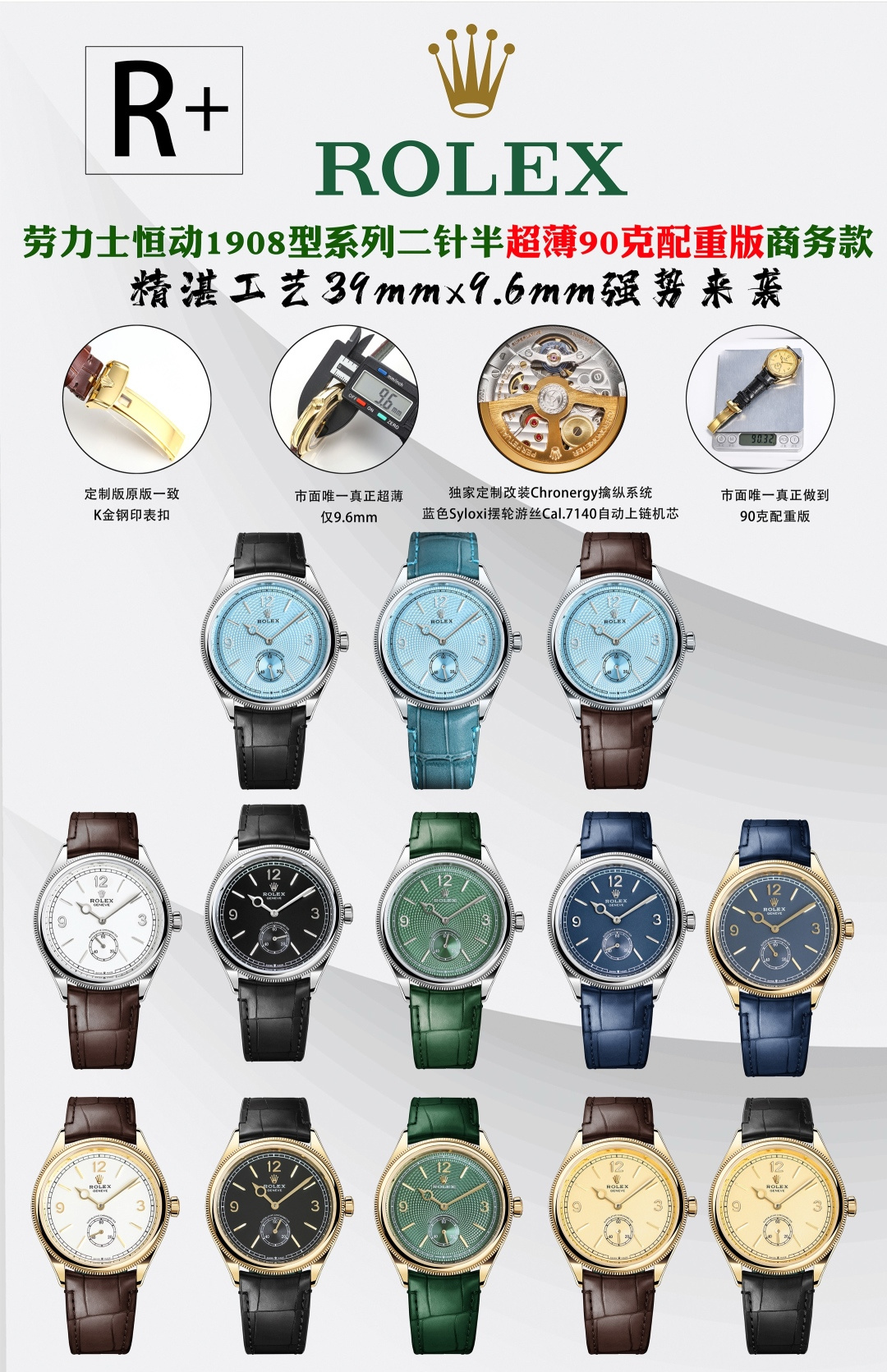 Rolex-1908 Platinum Ice Blue Dial Alligator Strap Exact 1:1 Super Clone 7140 Swiss Movement Replica Watch Ref-52506