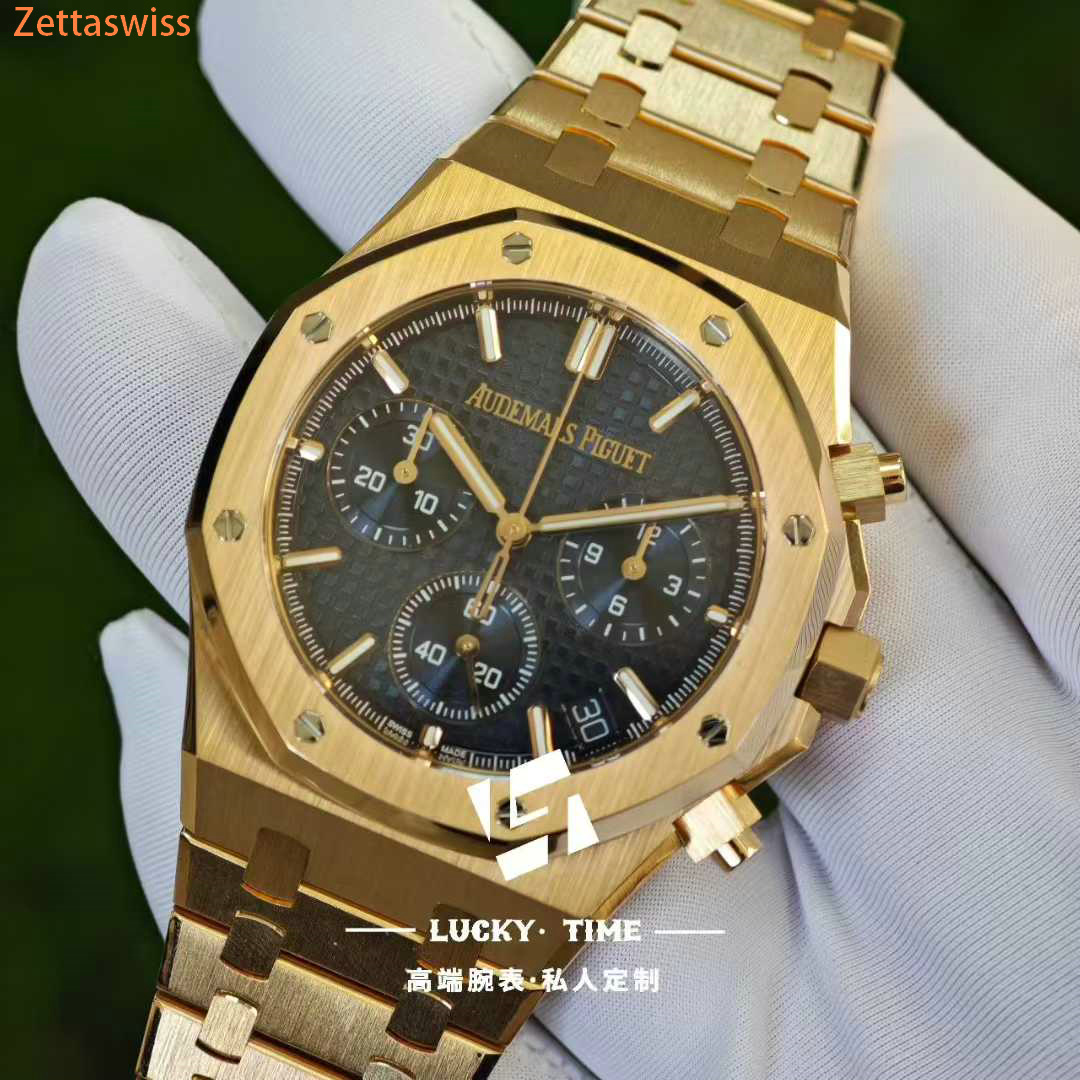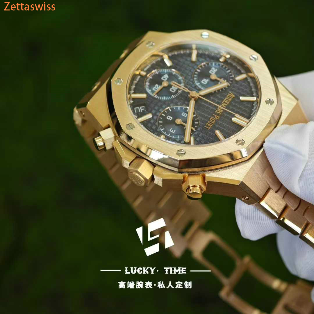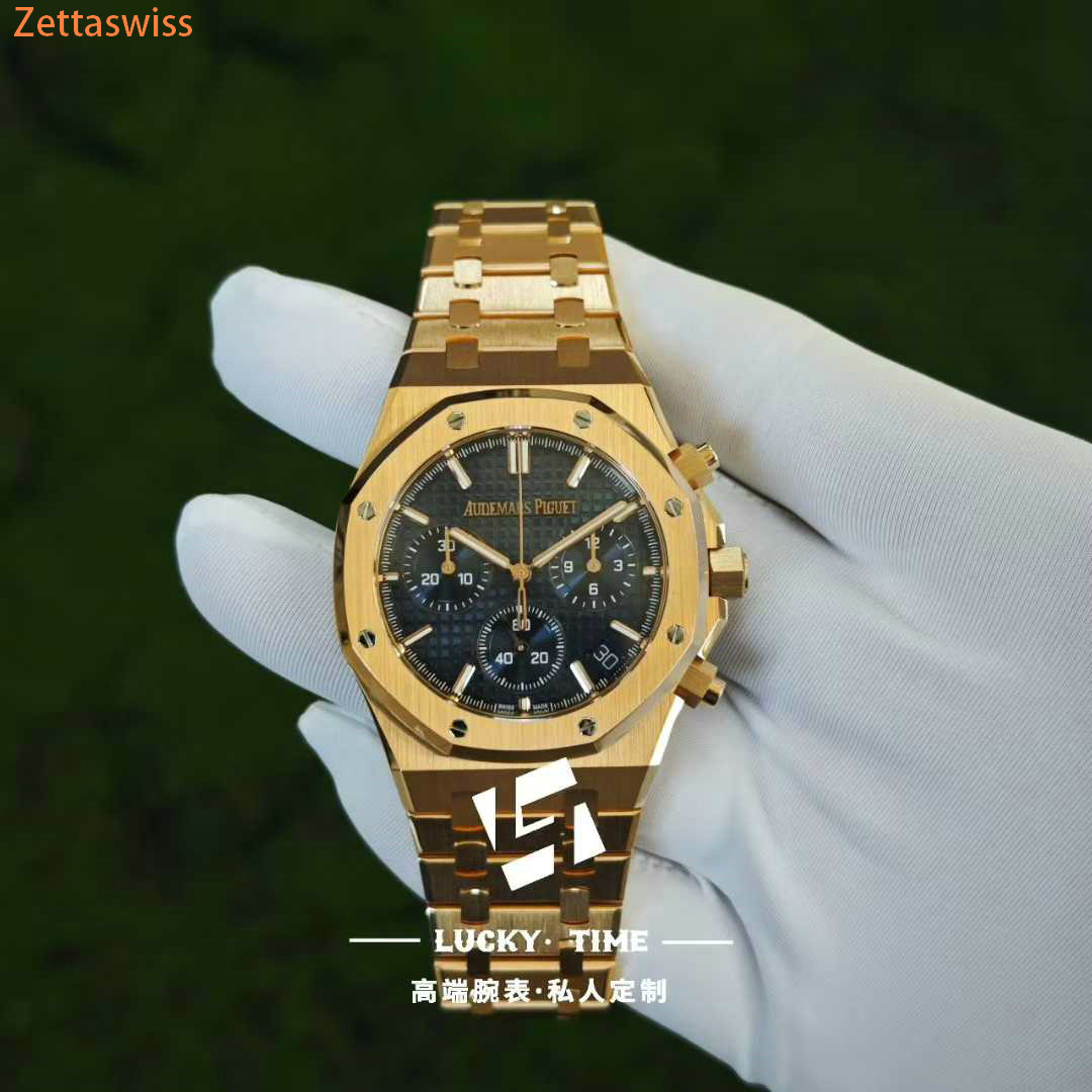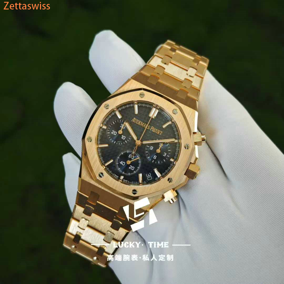 [Customization] Audemars Piguet-Royal Oak Chrono 26240OR 41mm Real 18K Rose Gold With Customized Blue Dial Super 1:1 4401 Movement