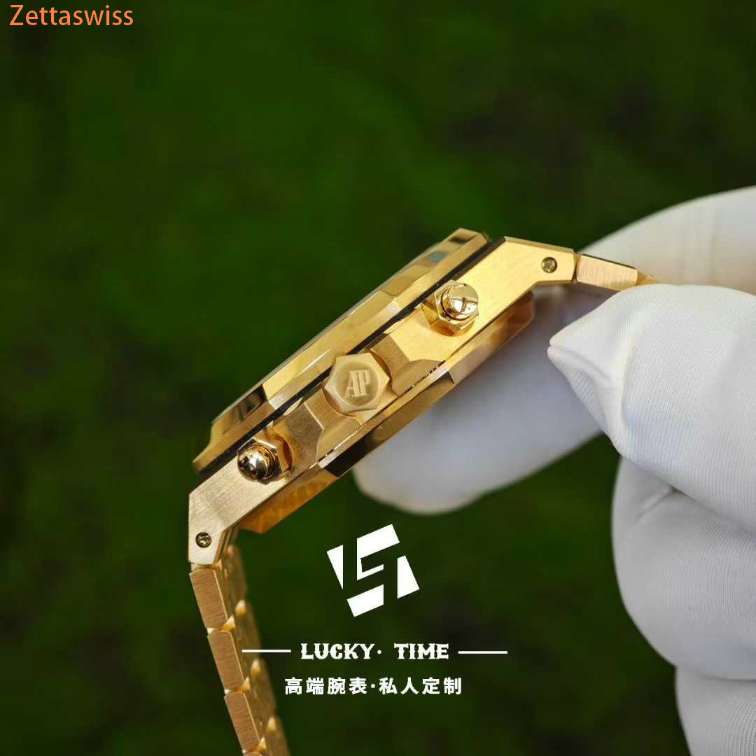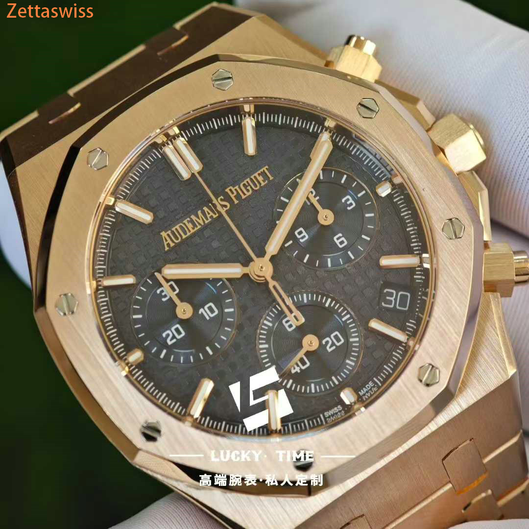 This is the culmination of ambition: a full 18K rose gold Royal Oak Chronograph, built not from borrowed parts but from the ground up with obsessive reverence for the original. Every gram, every angle, and every gleam is engineered to capture not just the look, but the substantial soul of Audemars Piguet's legendary icon.